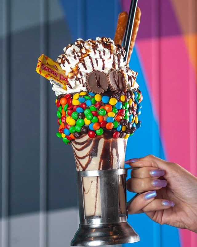 The bar is especially famous for its burgers and over-the-top milkshakes. Think of those massive milkshakes topped with a slice of cake and a cup full of sprinkles. Yes! You’ll find them here! With its creative menu and cool atmosphere, this place never disappoints.