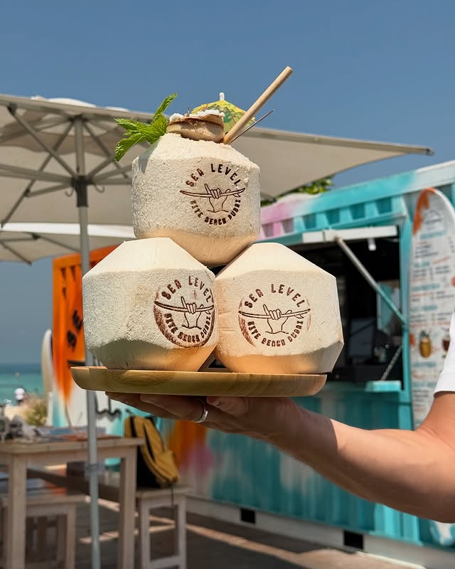 Kite Cafe serves a variety of beverages, including coffee, fresh juices, smoothies, mocktails, and soft drinks, perfect for cooling off after time at the beach or after trying the adventure activities in Dubai.