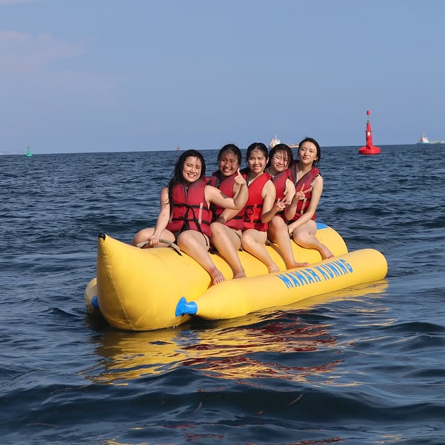 Imagine you’re riding on an inflatable colourful boat in the shape of a banana, a rocket, or even a hot dog. Six to eight people can take a seat on it, but hold on tightly; if not, you might be thrown into the water.