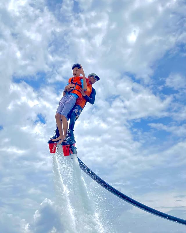 Once the jet ski powers up, water rushes through a large pipe and comes out as a high-pressure water jet. This powerful force pushes against the water and lifts you straight into the air.