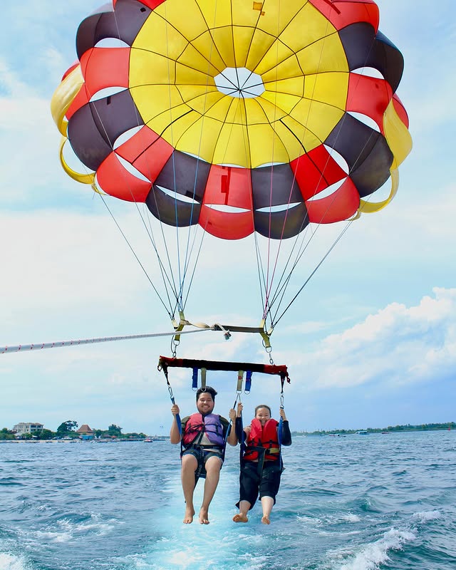 Nusa Dua Beach has calm waters, making it safe for anyone to experience water sports there. There’s a wide range of water sports, including parasailing, scuba diving, flyboarding and more!