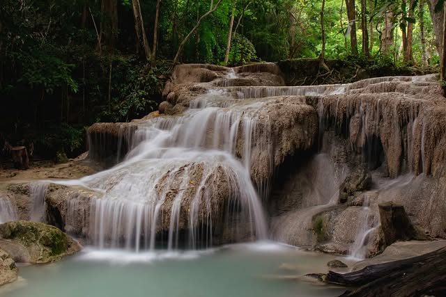 Erawan is a seven-tiered waterfall hiked one level at a time through forest trails and uneven terrain, making it a must-try adventure in Thailand.