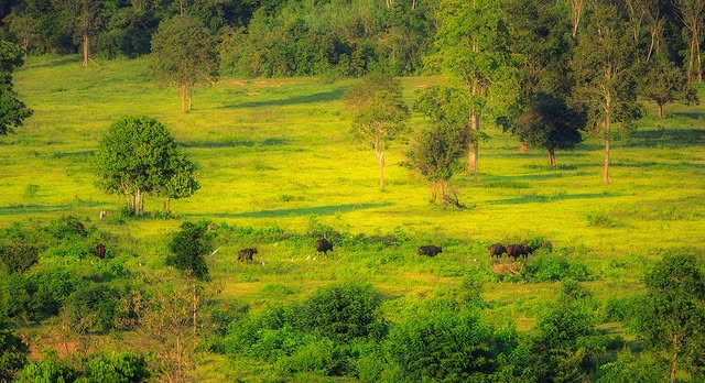 Mammals: elephants, gaurs, golden jackals