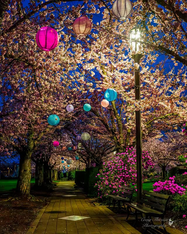 Imagine walking down a quiet path lined with cherry blossom trees. Their branches form a pink tunnel overhead. As the breeze blows, petals fall around you like soft snow, lightly touching your shoulders and covering the ground.