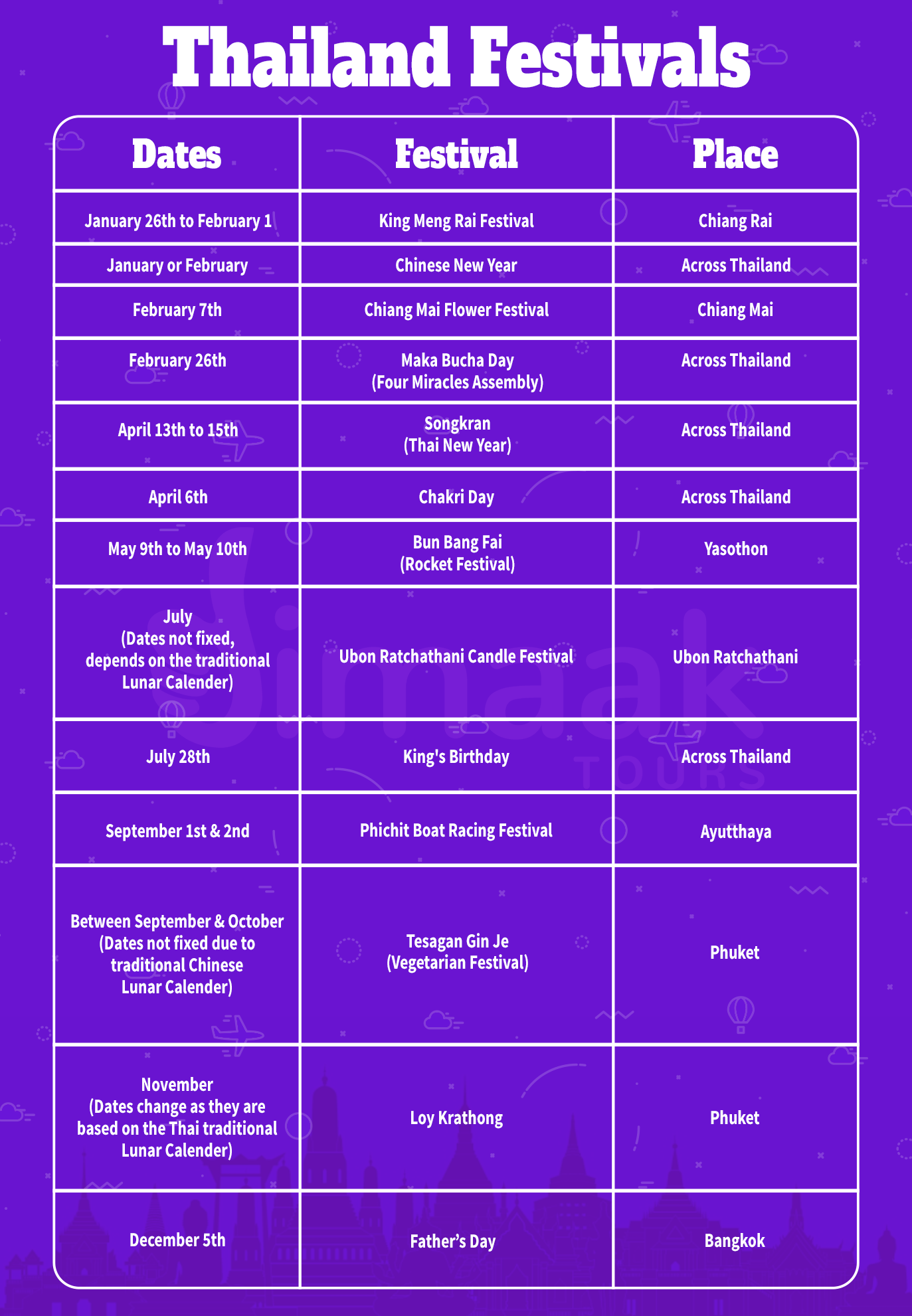 Thailand, the land of smiles is rich in culture and tradition. There are numerous captivating festivals celebrated across the province throughout the year. The country never fails to entertain the visitors with its vibrant festivals, delightful heritage, and with a glimpse of tradition. Each month offers significant revelries that are celebrated across the country, and yes there are plenty of eager tourists who also take part in it.