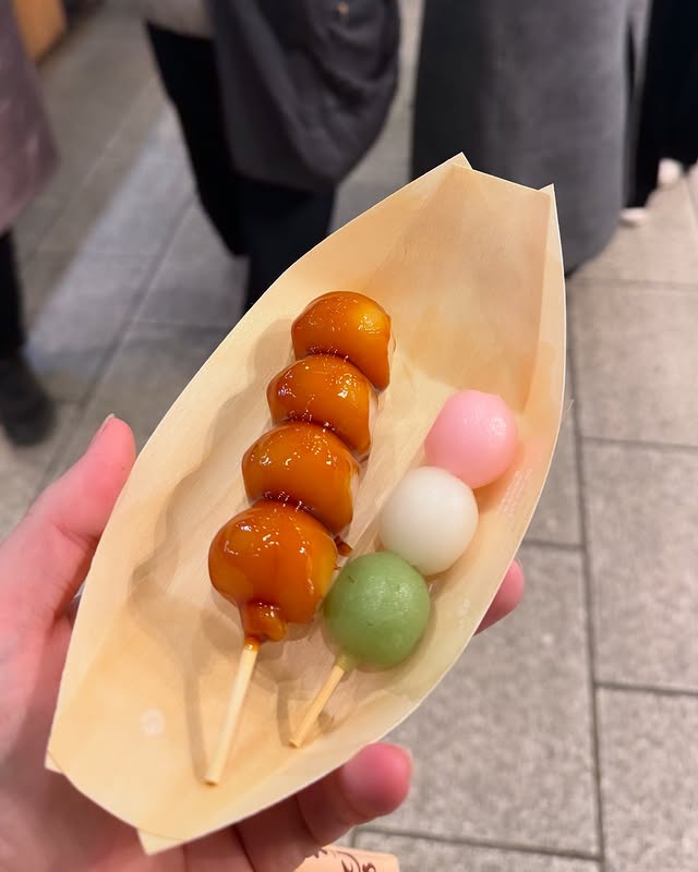 Dango is a traditional snack, i.e., chewy rice flour dumplings that feel both festive and comforting. It’s tied to seasonal events, especially hanami (flower viewing), and is loved for its simplicity. Since it’s small, portable, and filling, it makes the perfect street-side treat.