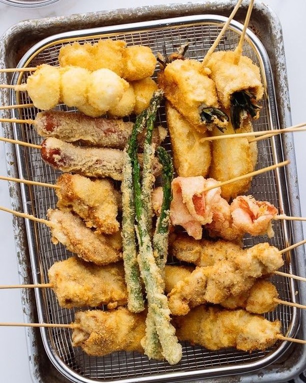 Kushikatsu originated in Osaka, where it became the ultimate casual snack to pair with drinks. This snack is popular with both locals and tourists because it’s affordable, fun to eat, and can be customised in many ways.