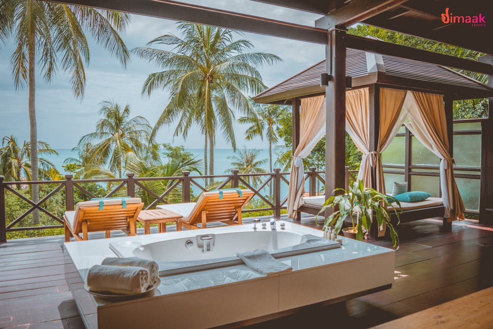 One of the major components of Thai vacation is indulgence in its spa treatments. This Koh Samui Luxury Resort provides one of the best spa treatments. Along with fantastic spa amenities they provide relaxing massages, a herbal steam room, and an open-air bathtub for floral or milk baths.