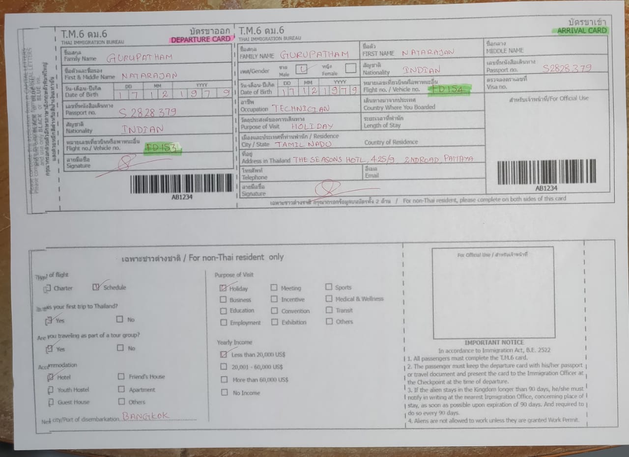 - A Return / onward journey air ticket for flying out of Thailand within the next 15 days.