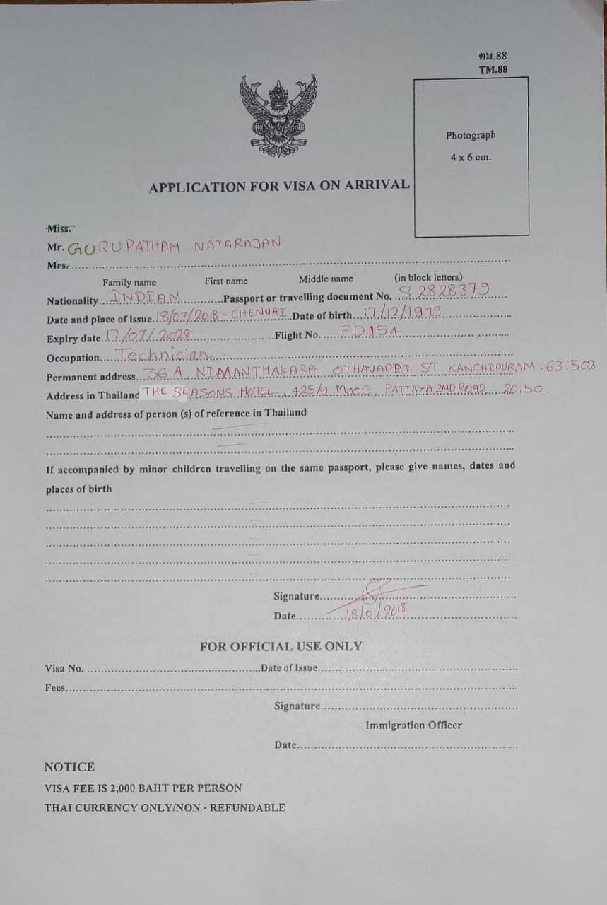 - Visa on Arrival fee for Indians is 2,000 THB (currently Visa fee is 0 THB as it is exempted until 30 April 2020.
