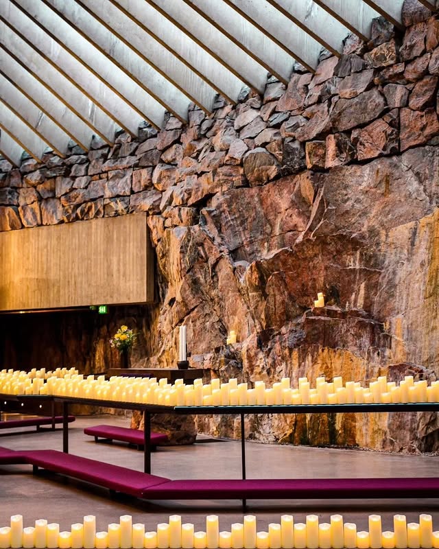 This ‘Rock Church’ perfectly blends nature and design, with its copper dome carved into granite bedrock. Sunlight coming through the dome creates a magical atmosphere inside.