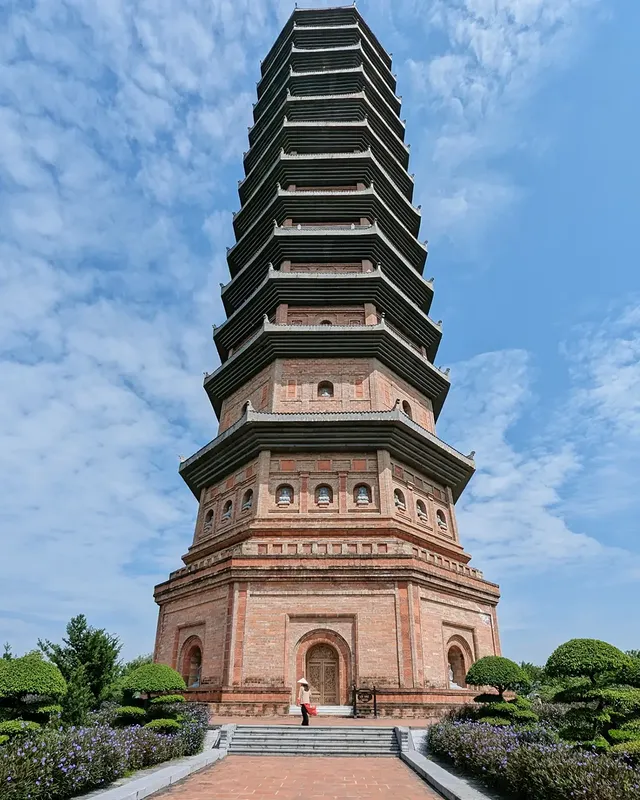 As the pagoda is located in the Bai Dinh mountain range, it offers a quiet, natural experience with lakes and limestone formations, taking you away from city noise.