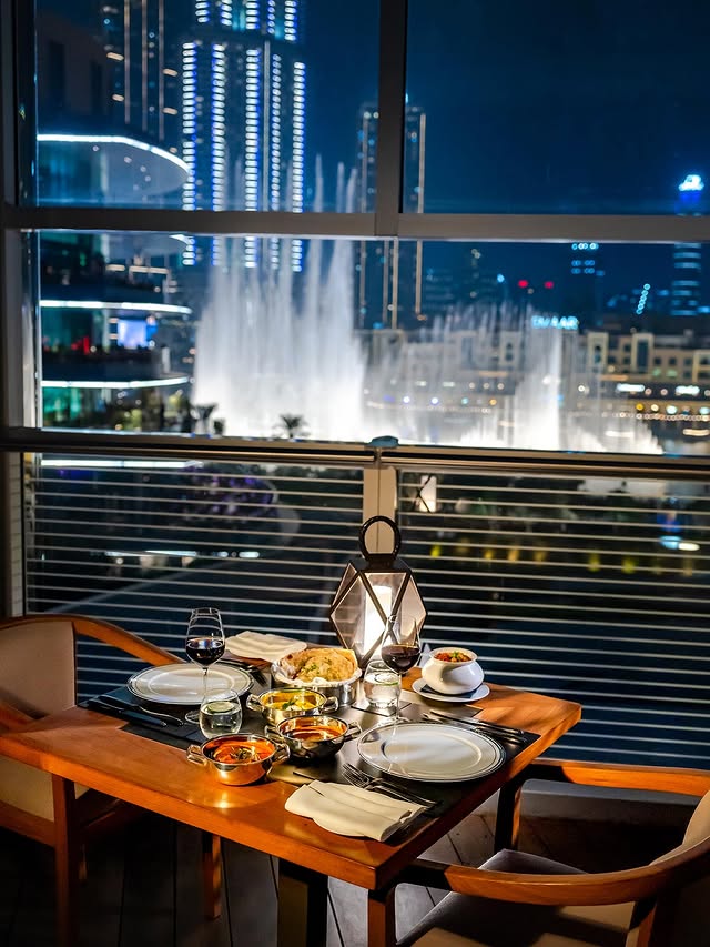 Rich curries, aromatic spices, and beautifully presented dishes shine here. The highlight? Having food with incredible views of the Dubai Fountain which doubles the dining experience.