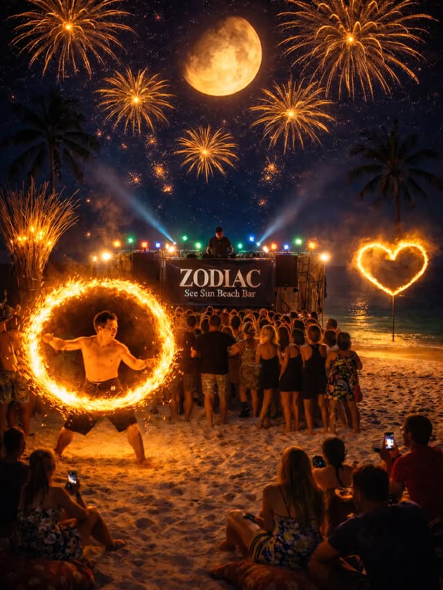 5. Enjoy the Sunset & Fire Show at Zodiac Bar, North Point Beach