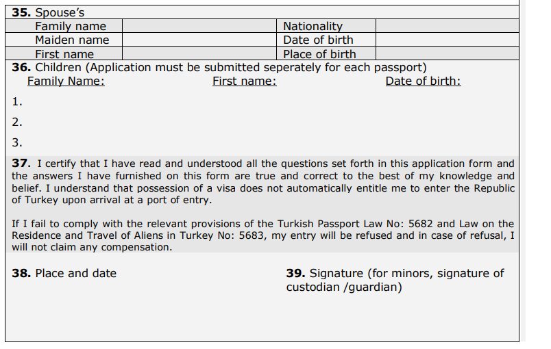 Use blue or black ink when you are filling out the Visa application form. Write only in block letters. Then, your signature/respective applicant’s signature must match on all pages.